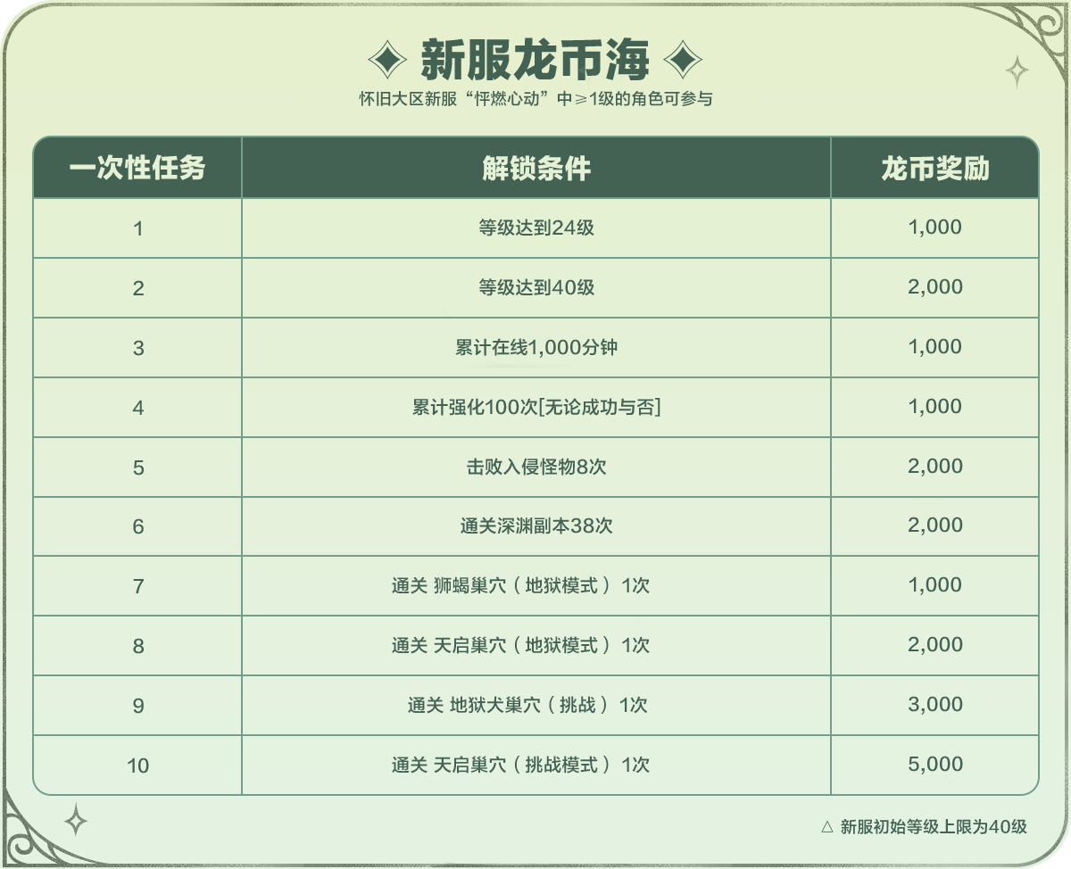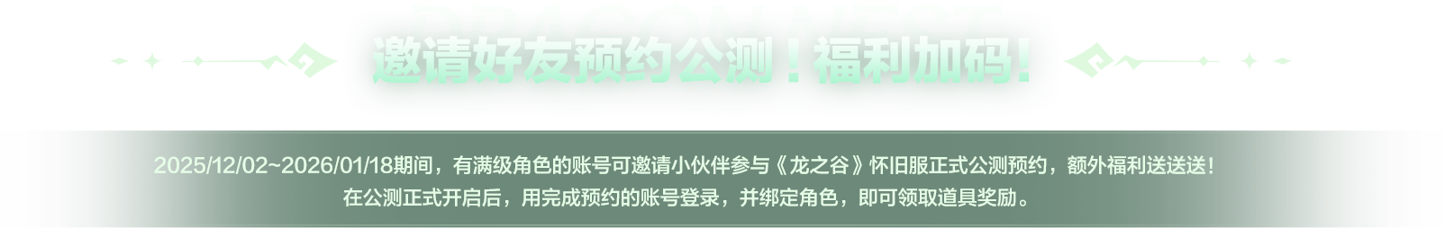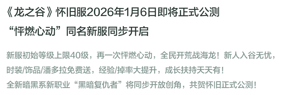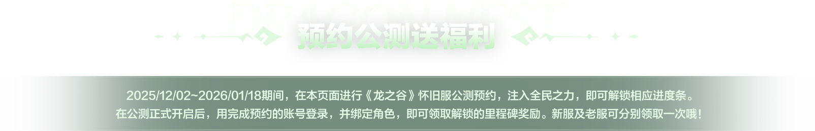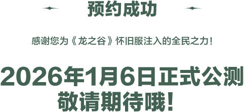 完成预约,即可为《龙之谷》怀旧服公测注入全民之力,解锁公测好礼!