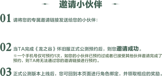1)请务必提醒被邀请者用完成公测预约的手机号登录本页面,并绑定角色哦,否则无法获得数据;